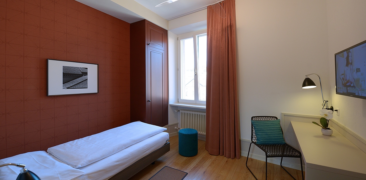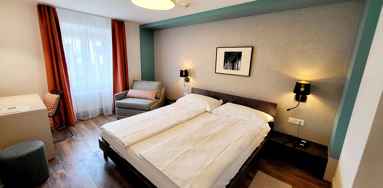 Completely newly renovated and practically furnished double and single rooms with harmonious color concept and attention to detail, equipped with air conditioning, flat screen TV, room safe as well as a modern bathroom with shower, toilet and hairdryer.