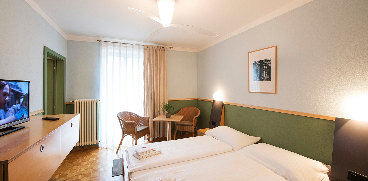Completely newly renovated, spacious and practically furnished double, family and single rooms with a harmonious colour concept and attention to detail, equipped with air conditioning, flat screen TV, room safe and a modern bathroom with shower, WC and hairdryer.
